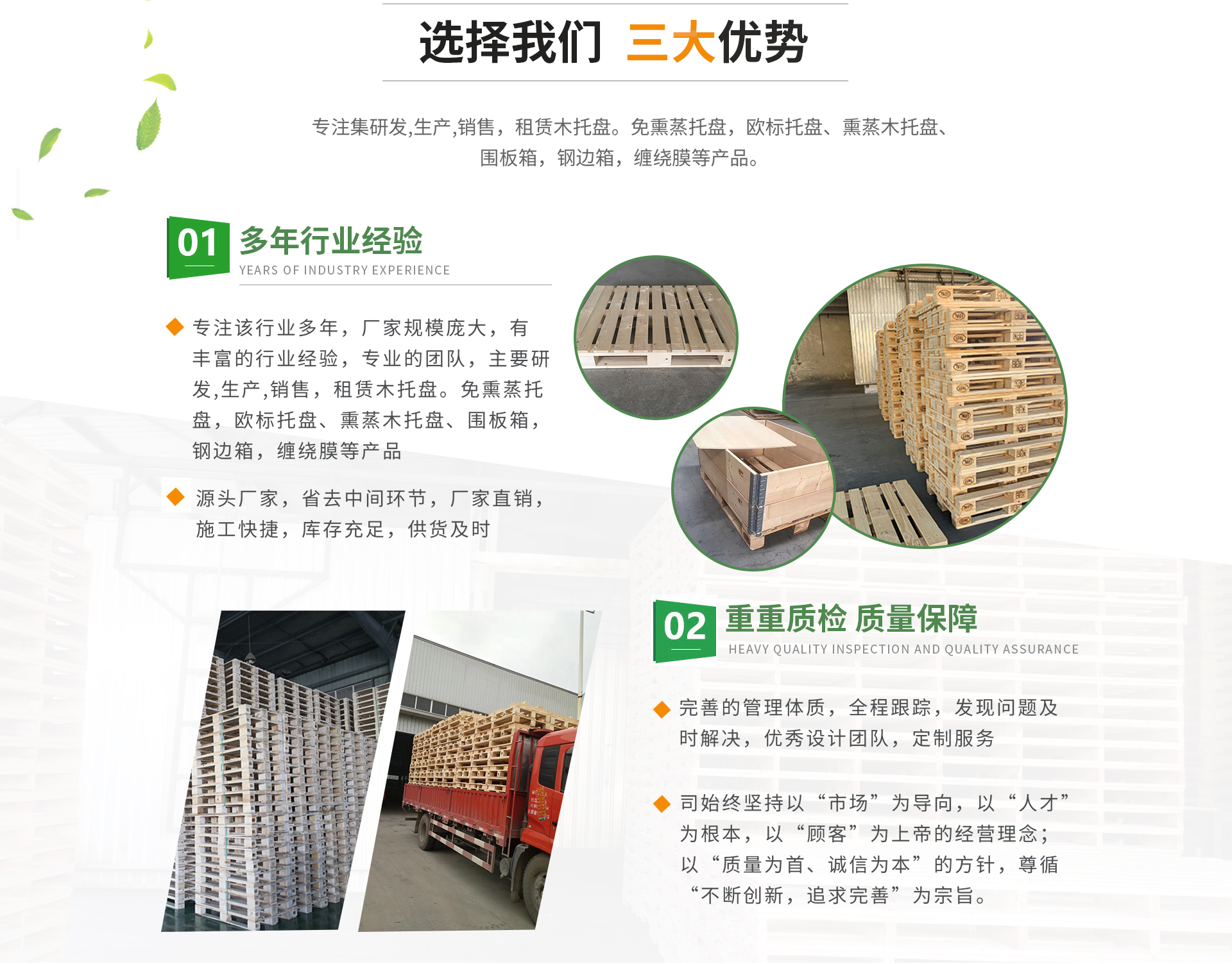 蕪湖奔騰包裝股份有限公司坐落于滬渝高速灣沚出口處3公里,距離灣沚高鐵站6公里,蕪宣客運機場5公里,交通十分便利。我公司是專注集木托盤研發(fā),生產(chǎn),銷售,租賃的綜合服務(wù)商。本公司生產(chǎn)的免熏蒸托盤,歐標(biāo)托盤、熏蒸木托盤、圍板箱,鋼邊箱等產(chǎn)品遠銷海內(nèi)外。公司本著“以質(zhì)量求生存,以信譽謀發(fā)展,以服務(wù)拓出路”的服務(wù)經(jīng)營理念;重視產(chǎn)品質(zhì)量和服務(wù),為用戶著想。根據(jù)客戶需求,及時送貨。公司始終堅持以“市場”為導(dǎo)向,以“人才”為根本,以“顧客”為上帝的經(jīng)營理念;以“質(zhì)量為首、誠信為本”的方針,尊循“不斷創(chuàng)新,追求完善”為宗旨。本著生產(chǎn)廠家,減少中間流通環(huán)節(jié)的原則,讓利于每位客戶朋友。我們的產(chǎn)品價格合理,質(zhì)量過硬,真誠歡迎各方客商前來業(yè)務(wù)洽談與合作。